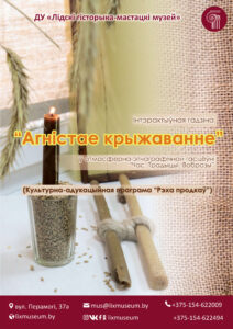 Інтэрактыўная гадзіна “Агністае крыжаванне”, якая праходзіць на базе атмасферна-этнаграфічнай гасцёўні “Час. Традыцыі. Вобразы”, створыць момант загадкавасці: а што ў куфэрку? А там –жыццё нашых продкаў. Дакладней, тое, з дапамогай чаго аберагалі жытло, сваю сям’ю. Акрамя таго, пазнаёмімся з абрадам “агністага крыжавання”, у аснове якога –свечка і яе полымя. Менавіта свечка становіцца сімвалам пазнавальнага занятка і напаўняе атмасферна-этнаграфічную гасцёўню водарам лета, мёду і незвычайнай цеплынёй.