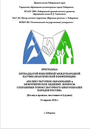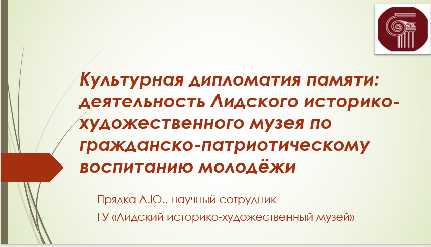 В формате видеодоклада научный сотрудник Лидского историко-художественного музея Прядка Л.Ю. приняла участие в Пятнадцатой юбилейной международной научно-практической конференции: «Поликультурное образование и межэтническое общение: вопросы сохранения этнокультурного многообразия народов России», организованной Правительством Хабаровского края и Тихоокеанским государственным университетом при поддержке партнёров.